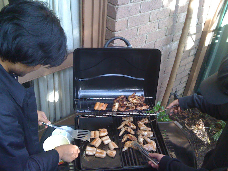 Bbq selamat diadakan pada hari Ahad jam 11 pagi. Kami telah ke rumah Barkly dalam jam 9 pagi seperti yang dijanjikan. (bukan kata pukul 8 pagi ka, ngeh ngeh). Maka kami di inchargekan untuk menjaga dapur. Mungkin kerana kami telah berpengalaman dalam menguruskan bbq henry suatu ketika dahulu.