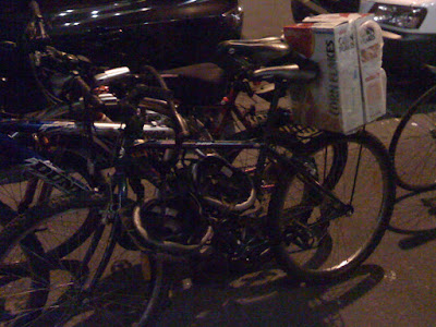 Setelah penat membayar segala barang, kami ingin pulang. Tetapi hanya ada aku dengan Hanis. Shafik dengan Umar belum keluar lagi. Apa aku nak buat? Aku dan Hanis memikirkan macam mana nak bawak Kellogs dengan susu ni naik basikal? Susu ini sudahla besar, berat pulak tu. Kellogs pun sama juga. Besar kotaknya. Idea pertama masukkan ke dalam sweater. Hoh! idea bernas. Kata Hanis kepada aku. Selang beberapa detik ,Hanis meletakkan Kellogs saya dan beliau punya di tempat duduk belakang basikal Shafik. Ha'a. Tak terpikir pulak kan. Kata aku dengan penuh segan akan idea Hanis yang bijak itu.